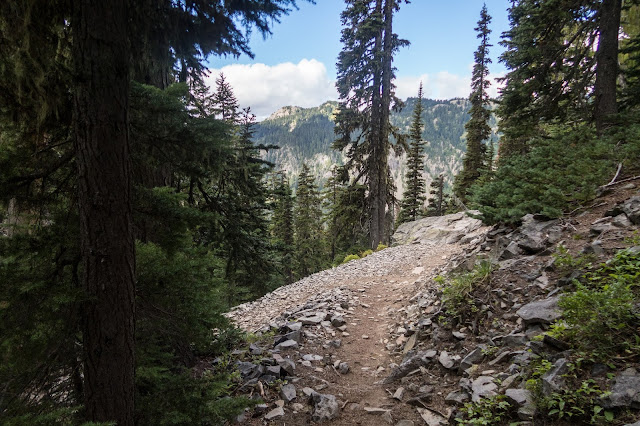 It was afternoon before we started hiking from the Snowgrass Flats trailhead. Our goal for the first day was to camp at Goat Lake. First, we hiked a short distance over to the Berry Patch Trailhead.